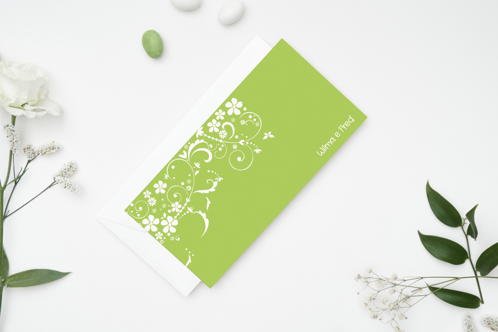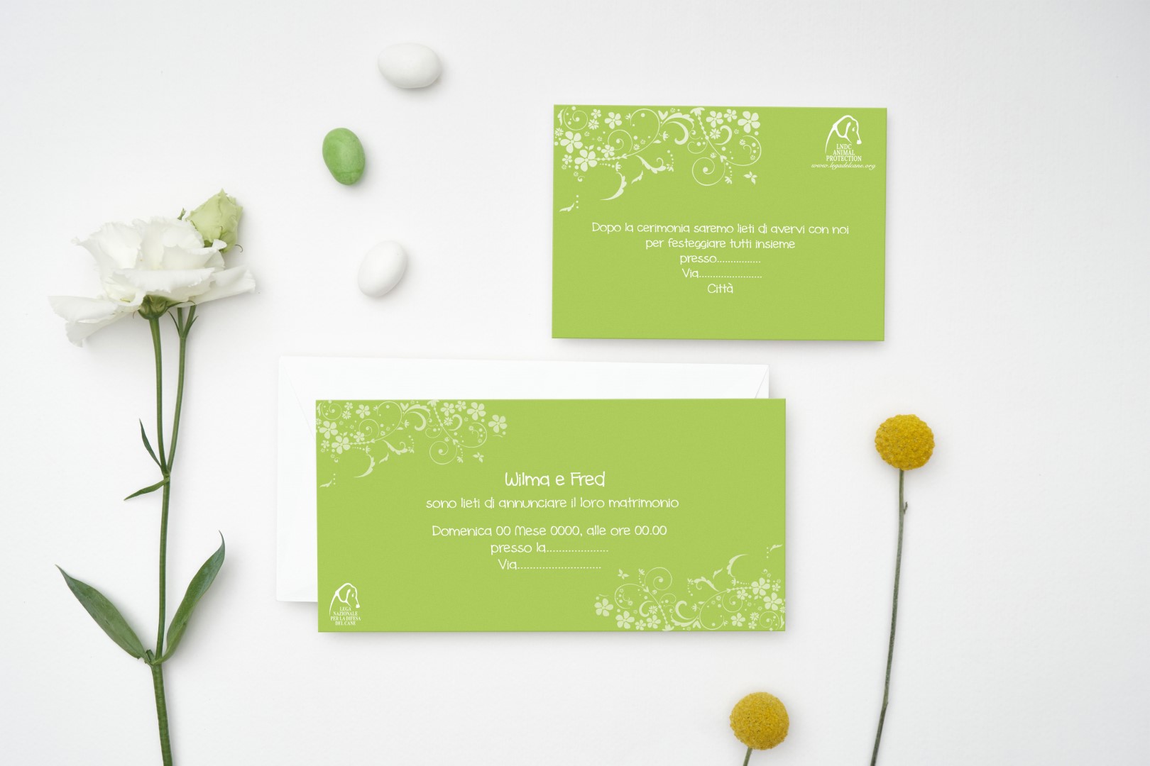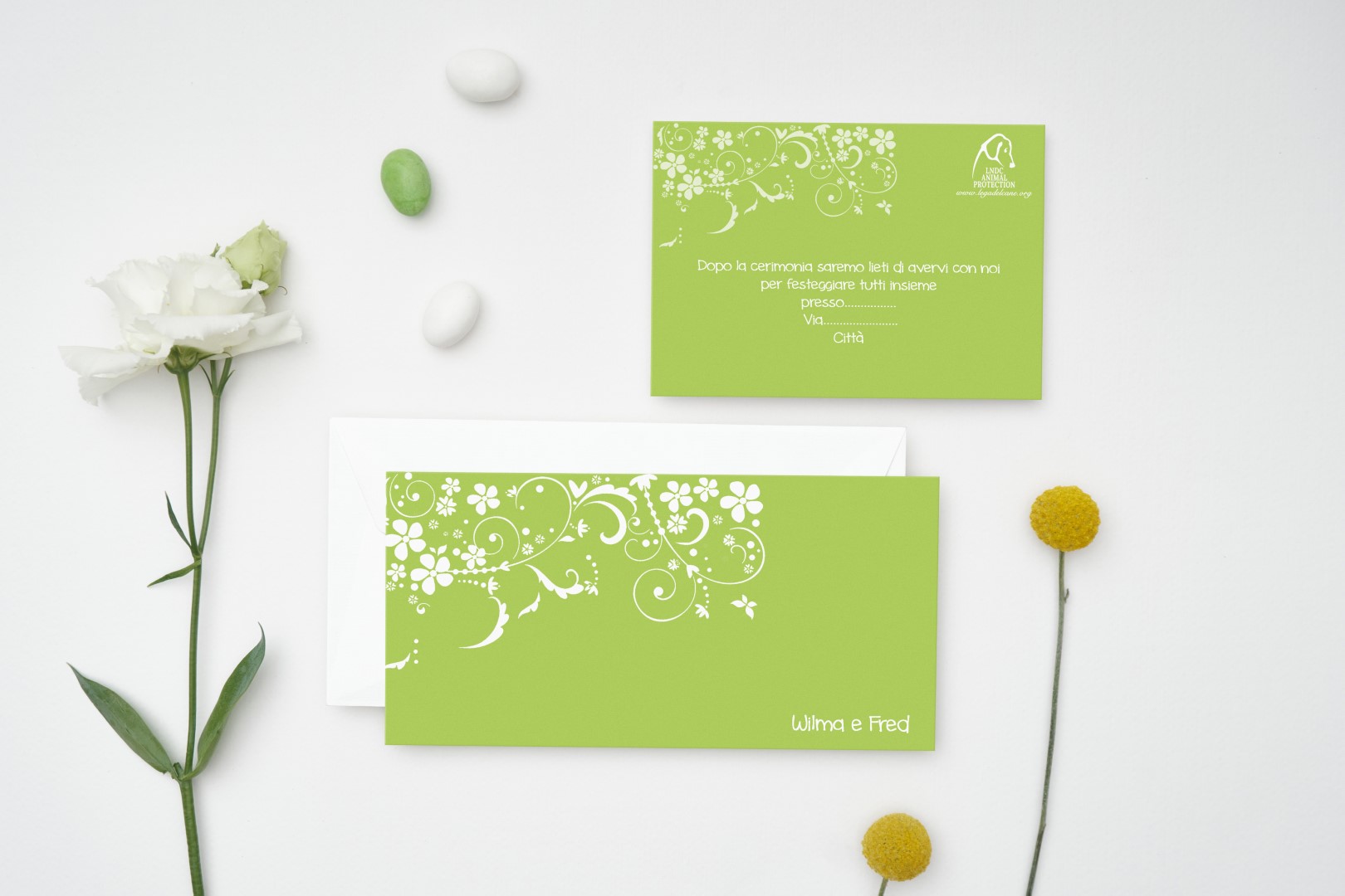 Cartoncino partecipazione formato 10,5×20; stampa fronte e retro, colore personalizzabile.